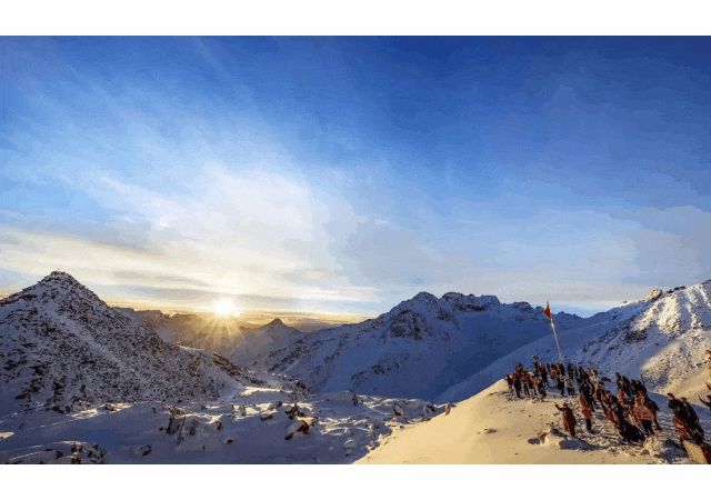 但乘坐全球海拔最高的客運纜車抵達4860之巔時,卻儼然另一番景象。群山被皚皚白雪覆蓋,籠罩在白茫茫的一片中。天空中輕盈的春雪飄然落下,游人正在打雪仗、堆雪人……熱鬧非凡!此番種種與山腳下的景象截然不同,冬和春共同組成了達古冰川的春日盛景。