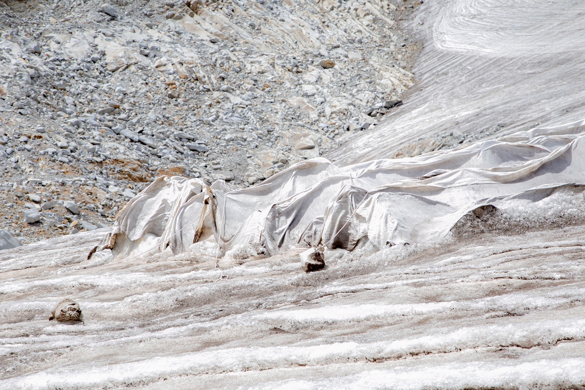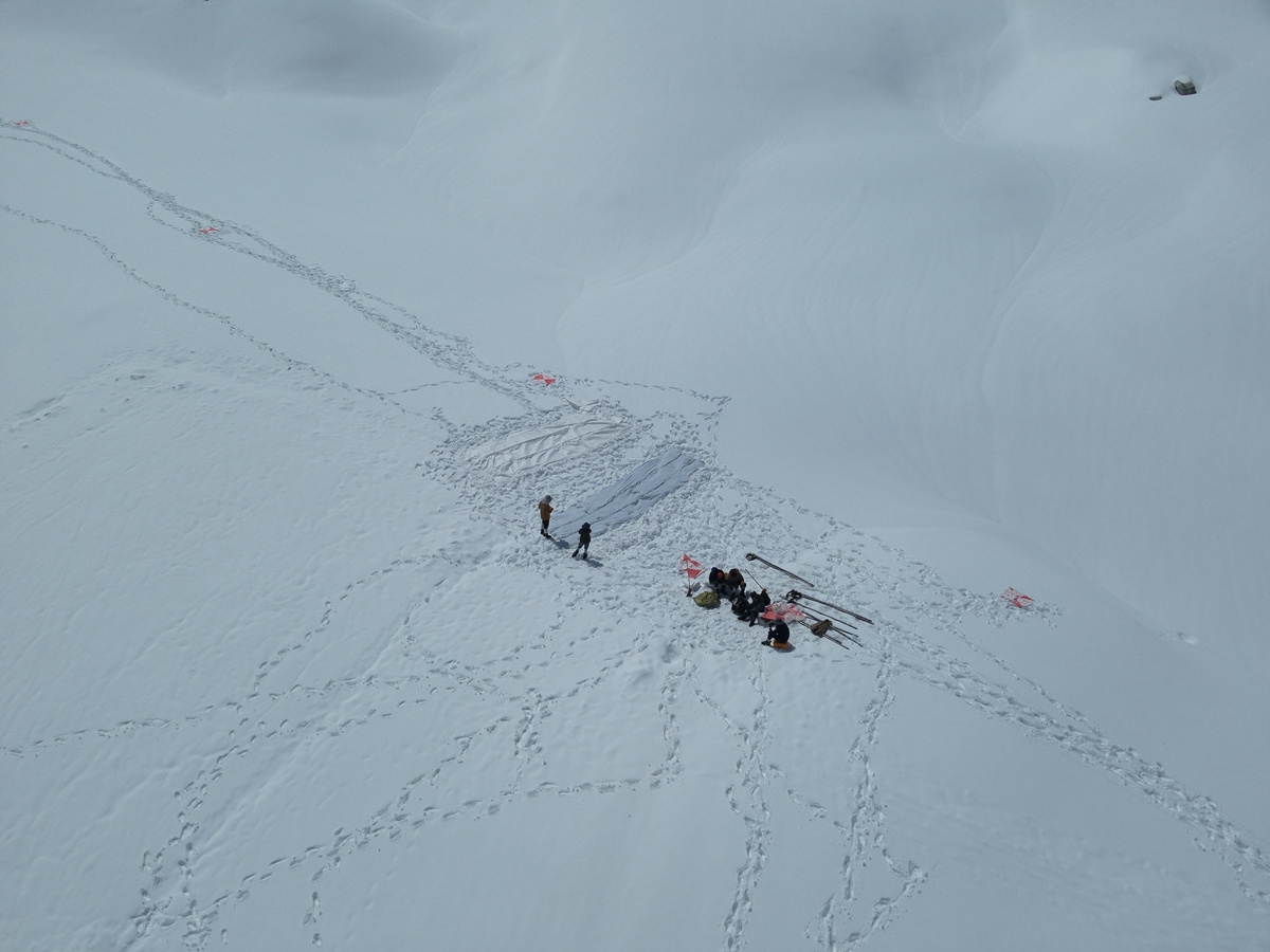 冰川很大,人類很小。從天空俯瞰,冰川的“被子”——一塊塊白色材料,就像廣袤冰川上小小的“創口貼”。不免讓人疑問,人工干預冰川退化有用嗎?500平方米的試驗場,能否移植到幾十倍甚至上百倍大的冰川?