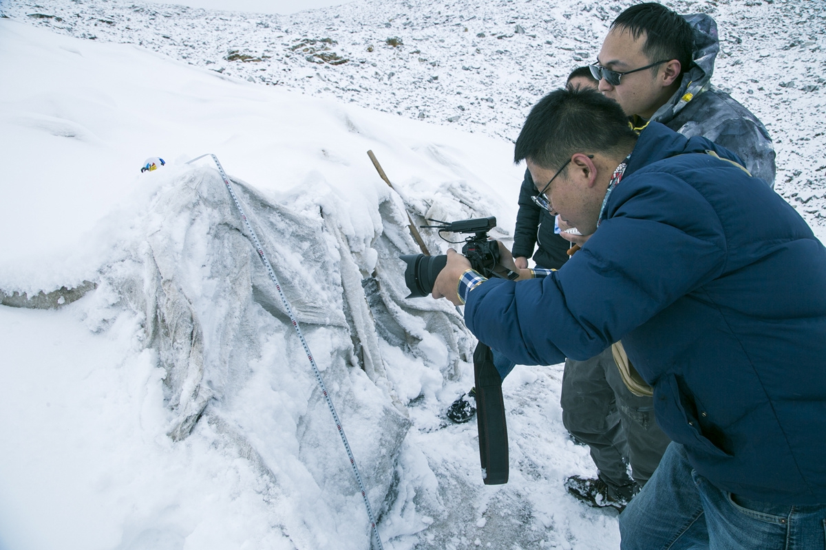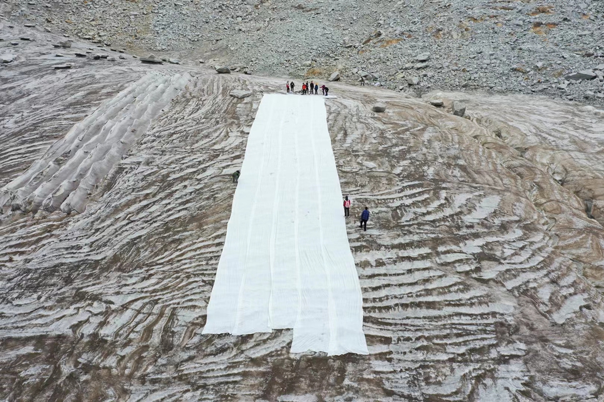 “原理很簡單,就是利用光熱阻隔物,通過隔熱和反光材料,增大冰的表面反照率,阻擋太陽輻射和冰的表面熱交換,從而減緩冰川消融。”王飛騰說。