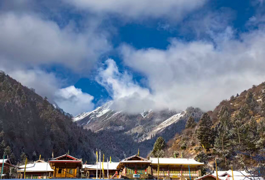 在達古,“一山有四季,十里不同天”!山下春風蕩漾,山上卻是皚皚白雪,且會持續至每年6月底。