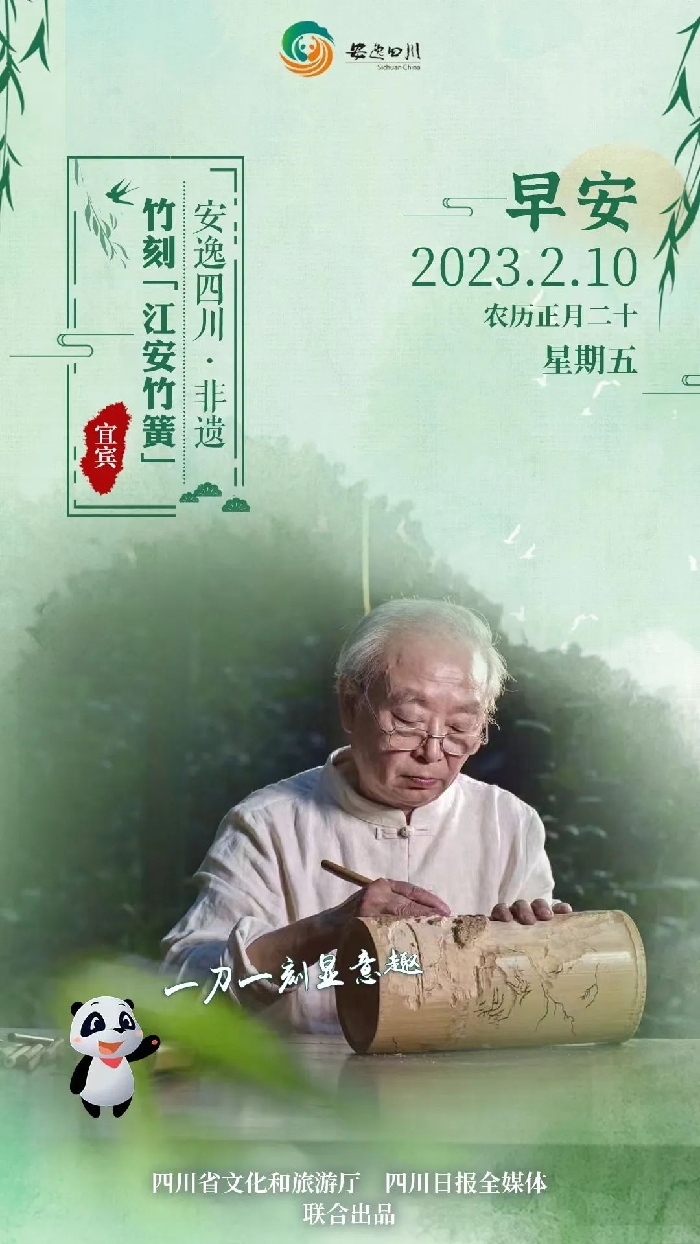 今日安逸四川日歷海報走進國家級非遺江安竹簧,看一刀一刻顯意趣。