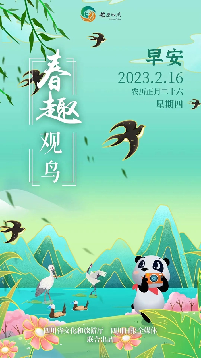 今天,安逸四川日歷海報(bào)帶大家融入大自然,觀鳥徒步尋生態(tài)之美。
