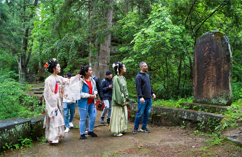 “古樹、古橋、古道……從望夫橋到松寧橋一路走過,踩在年代久遠的石板路上,感受到了中國古人的智慧,也讓我對蜀道文化有了更深的認識。” 國際媒體人、孟加拉國網絡主播Hossain一邊走,一邊拍。