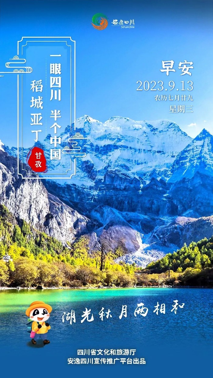 今天安逸四川日歷海報“一眼四川·半個中國”走進甘孜州稻城縣亞丁自然保護區(qū),感受湖光秋月兩相和的靜謐。