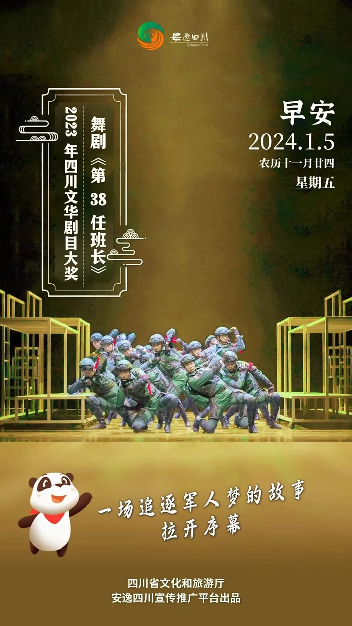 2024年1月5日,星期五。今日安逸四川日歷海報帶大家欣賞2023年四川文華劇目大獎——舞劇《第38任班長》!