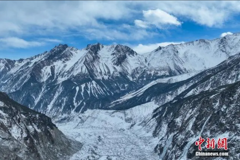 圖為1月31日拍攝的海螺溝千年冰川冰舌。(無人機照片)中新社記者 劉忠俊 攝