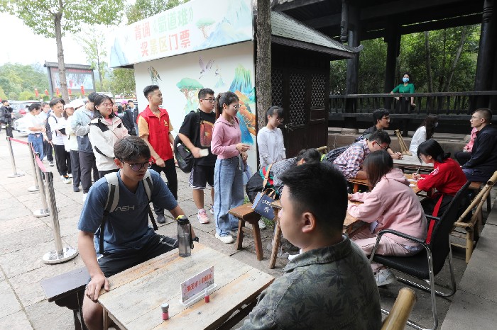 “書中自有黃金屋,知識絕對能變現(xiàn)。”5月13日,來自四川建筑職業(yè)技術(shù)學(xué)院的吳同學(xué)正激動說道,“我使勁背了一天,就順利通關(guān),真的減免了105元的門票錢,劃算!”