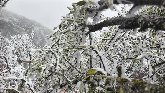 11月17日,廣元旺蒼鹽井河景區迎來2024年第一場雪,原本五彩斑斕的秋日盛景,轉瞬間變身成一幅冬日銀裝的潑墨山水圖,皚皚白雪給廣袤群山披上了一層潔白的外衣。山間云霧也如約而至,綿延起伏的山巒在云霧中若隱若現,更添夢幻。