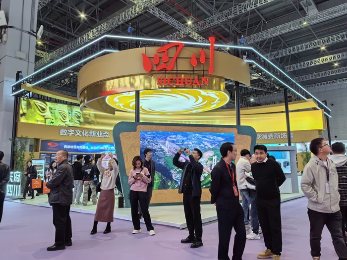 11月22日,第五屆長三角國際文化產業博覽交易會在國家會展中心(上海)開幕舉行。四川展館以“活力天府 文化四川”為主題亮相,聚焦數字文化產業、文旅融合發展、非遺傳承保護等,采用“1+N”參展形式(即搭建1個四川展館、組織參加N項配套活動),全方位、多元化宣傳展示四川文化產業發展成效。