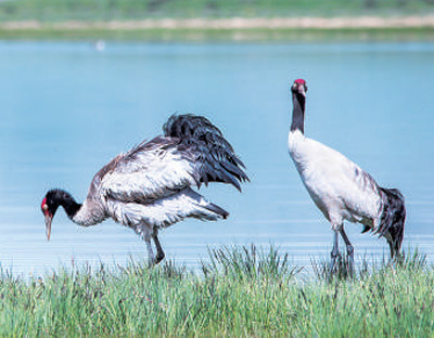 若爾蓋濕地的黑頸鶴。貢波澤里 攝