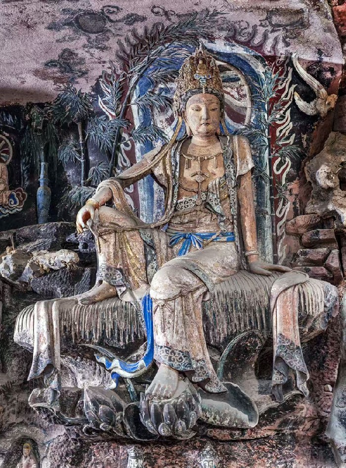 其中,毗盧洞紫竹觀音是北宋石刻藝術的精品之作,被譽為“東方維納斯”,其雕刻細膩,姿態優雅,面部表情生動傳神,體現了宋代高超的雕刻技藝;臥佛院長達23米的釋迦牟尼涅槃像,規模宏大,氣勢恢宏,令人嘆為觀止。這些石刻造像不僅是藝術的杰作,更是歷史的見證,吸引著眾多游客和學者前來觀賞、研究。