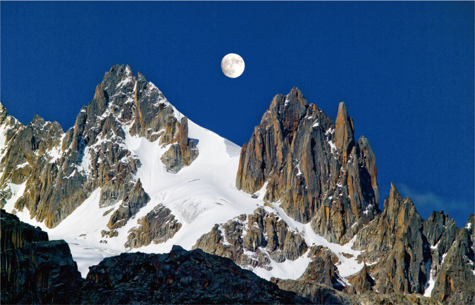 冰蝕地貌的代表性地貌,是原山峰周?chē)废啾嘲l(fā)展形成的外觀形態(tài)。相鄰冰斗間殘留的刀刃狀山脊,稱(chēng)為刃脊;孤立、峻峭的尖鋒即為角峰。
