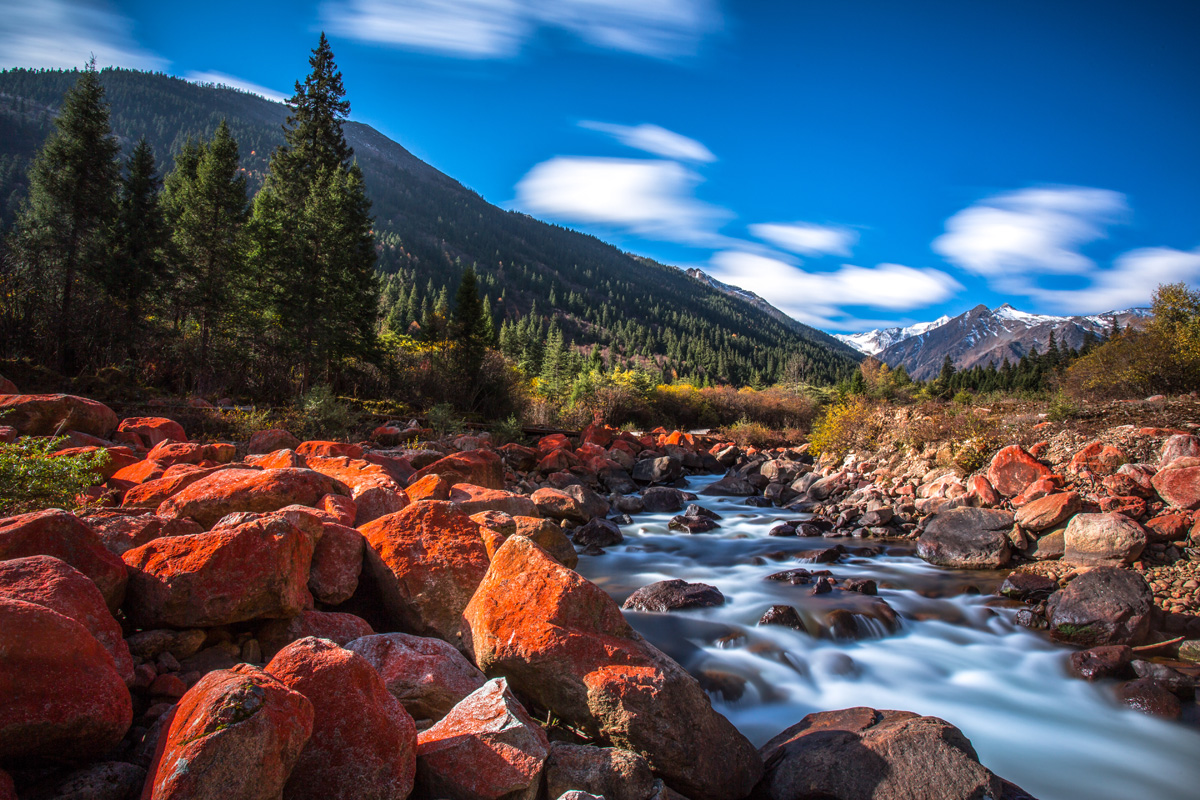位于達(dá)古河谷,由花崗巖礫石組成的古冰川漂礫堆積而成,呈帶狀展布,長(zhǎng)度大于1 000 m,寬30-80 m。漂礫上生長(zhǎng)著一種含有大量類(lèi)胡蘿卜素的喬利橘色藻,導(dǎo)致漂礫呈橘色,顏色鮮艷,寓意吉祥,故被命名為“鴻運(yùn)坡”。