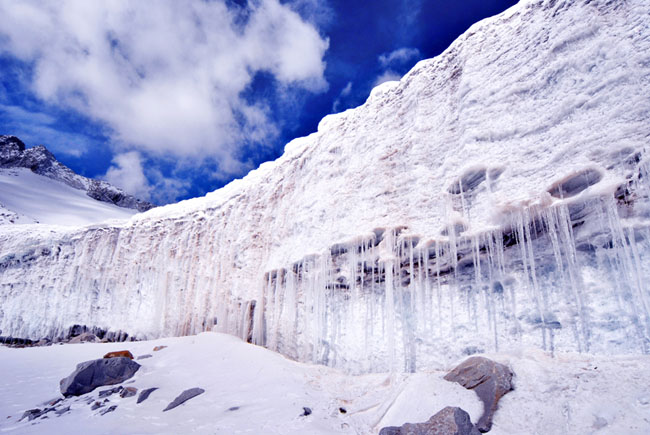 冰川科普旅游產品 打印 說明 日期:2014-05-05 15:18 達古冰川發育著現代山地冰川13條,面積6.04平方公里。 景區內冰川造型各異,神奇壯觀。 其中最大的冰川冰舌長1600米,積厚60米,面積1.1平方公里。 最大的冰磧湖東西長1800米。南北寬300米,面積54萬平方米。 最大的冰瀑布寬30米,落差700米,在200多平方公里冰川作用區內, “u”型圍谷、冰斗、冰磧湖,古冰川瀑布等冰蝕地貌等異彩紛呈,應有盡有。 上一頁 下一頁