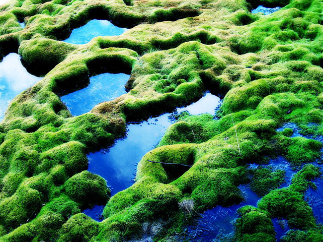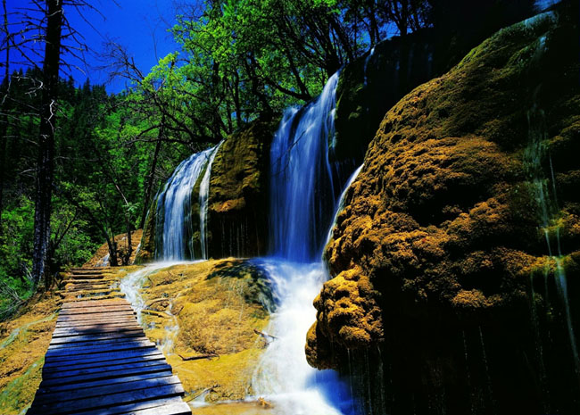 景區(qū)植物繁茂,夏季秋初,草海青綠,姹紫嫣紅,深秋則紅黃綠交相輝映,斑斕多姿。客龍溝內(nèi)狀如海綿的青苔彩毯,幔緯般高懸樹枝的綠色松蘿堪為奇絕。而樹生樹、連理樹、寄生樹之類的“合二為一”樹、“合三為一”樹,在客龍溝都可尋覓。客龍溝森林基本保持原始狀態(tài),整個溝中水霧、水氣使空氣濕度較大,細雨霏霏,冷氣透骨。水育了樹,樹育了苔蘚,苔蘚濕潤,水更充沛、樹更豐茂,平衡的自然生態(tài)使鈣華發(fā)育更好。