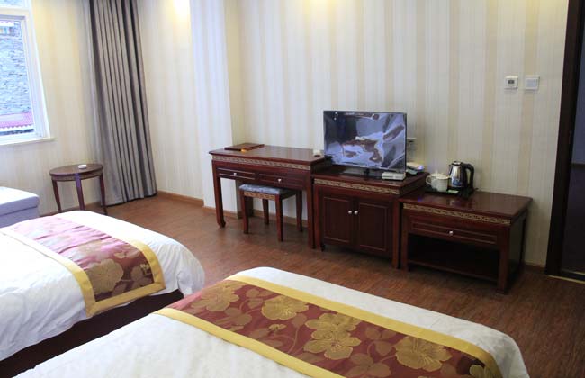 環(huán)境優(yōu)雅,標(biāo)間wife覆蓋,免費停車,供特色生態(tài)農(nóng)家菜、藏餐,24小時供應(yīng)熱水、空調(diào),設(shè)有棋牌室。